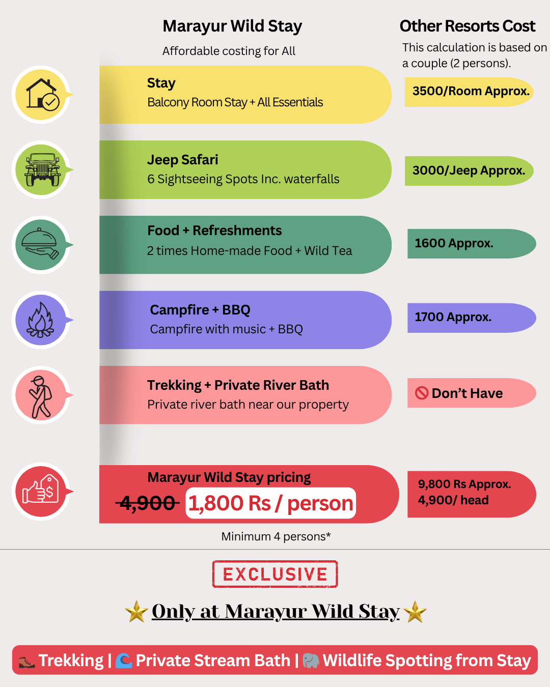 Located next to Karimutty Waterfalls, Marayur Wild Stay in Kanthalloor features six well-appointed rooms and convenient on-site parking for guests.
